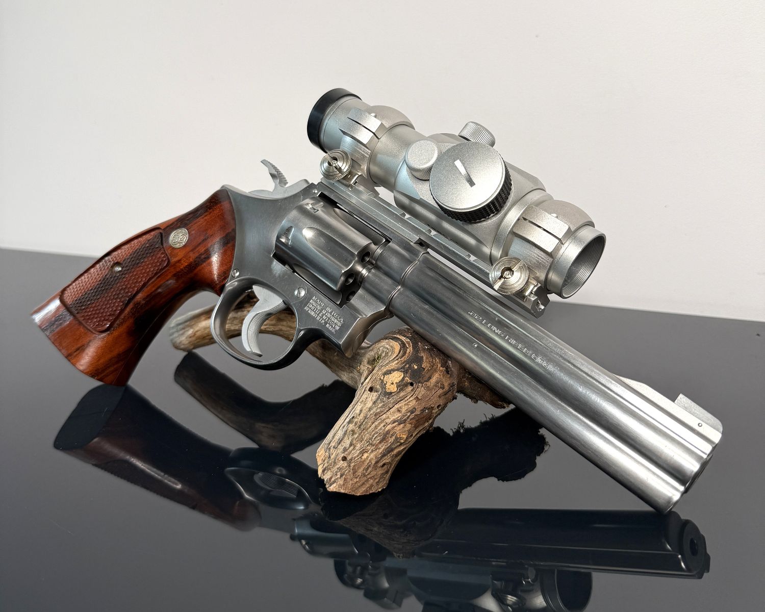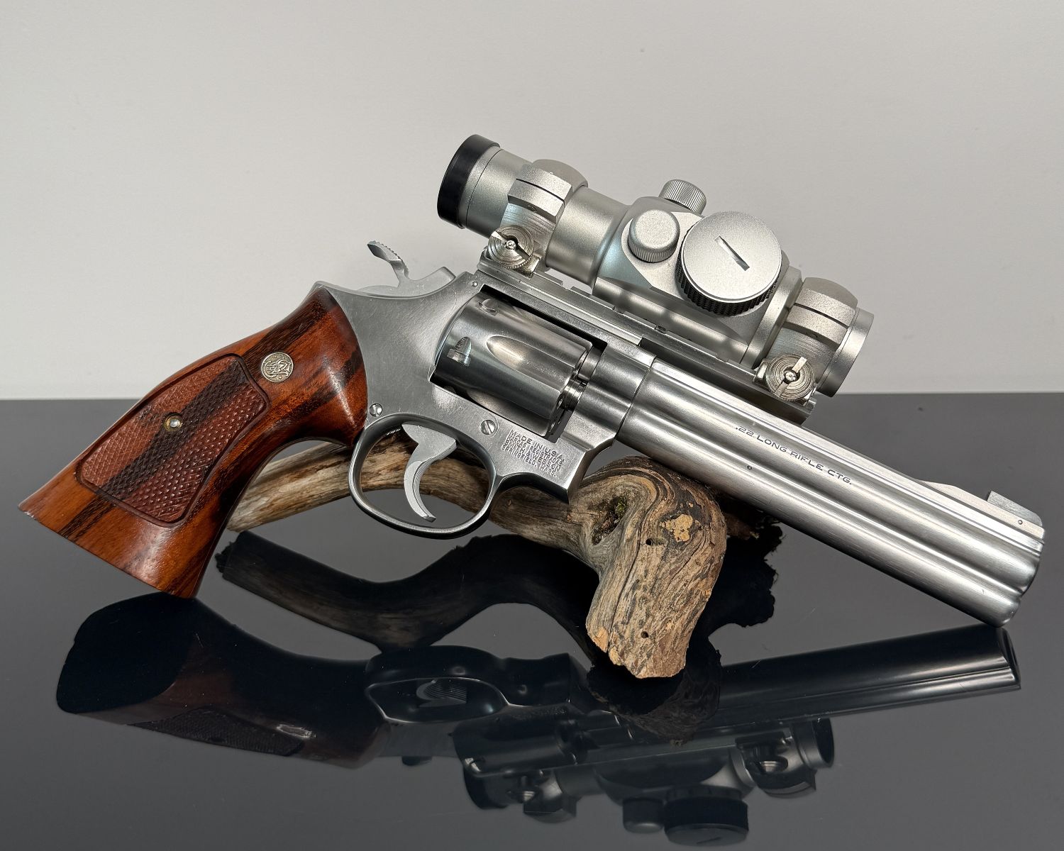 Smith & Wesson Model 617 – Kal. .22 LR, 6″, Stainless, mit Tasco Pro Point Rotpunktvisier