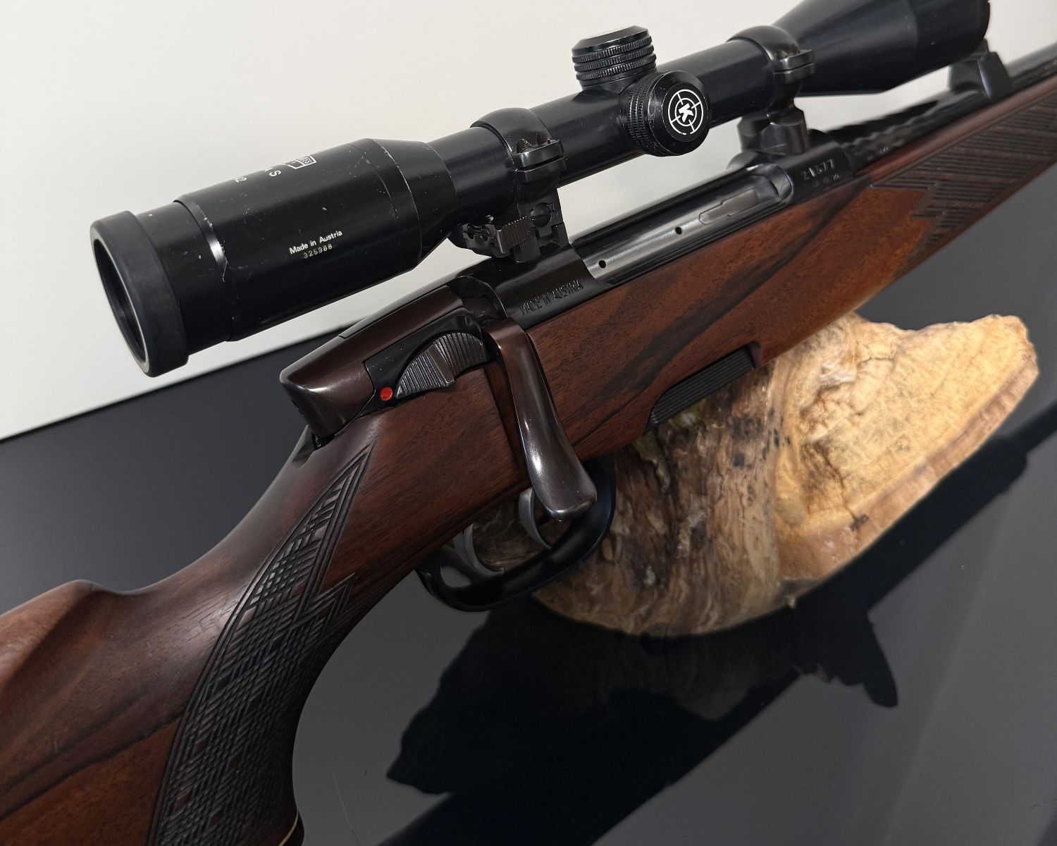 Der Gesamtzustand der Büchse ist sehr gut: gepflegte Oberfläche, funktionstüchtige Mechanik und stabile Montage — ideal für den Einsatz im Feld oder als hochwertiges Sammlerstück.